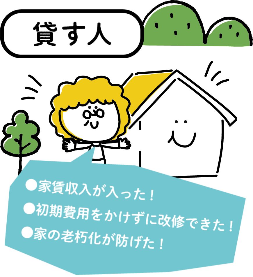 長い間空き家の物件は、築年数も経過し、現状のそのままではなかなか借主様が見つからないケースが大半です。しかし、この事業を活用することで、古く傷んだ箇所は改修工事をした後に借主様には入居して頂きますので、借主様は改修負担なく入居でき、貸主様は古かった物件が生まれ変わる…。 どちらもハッピーになれ街の活性化にもつながる事業なのです。